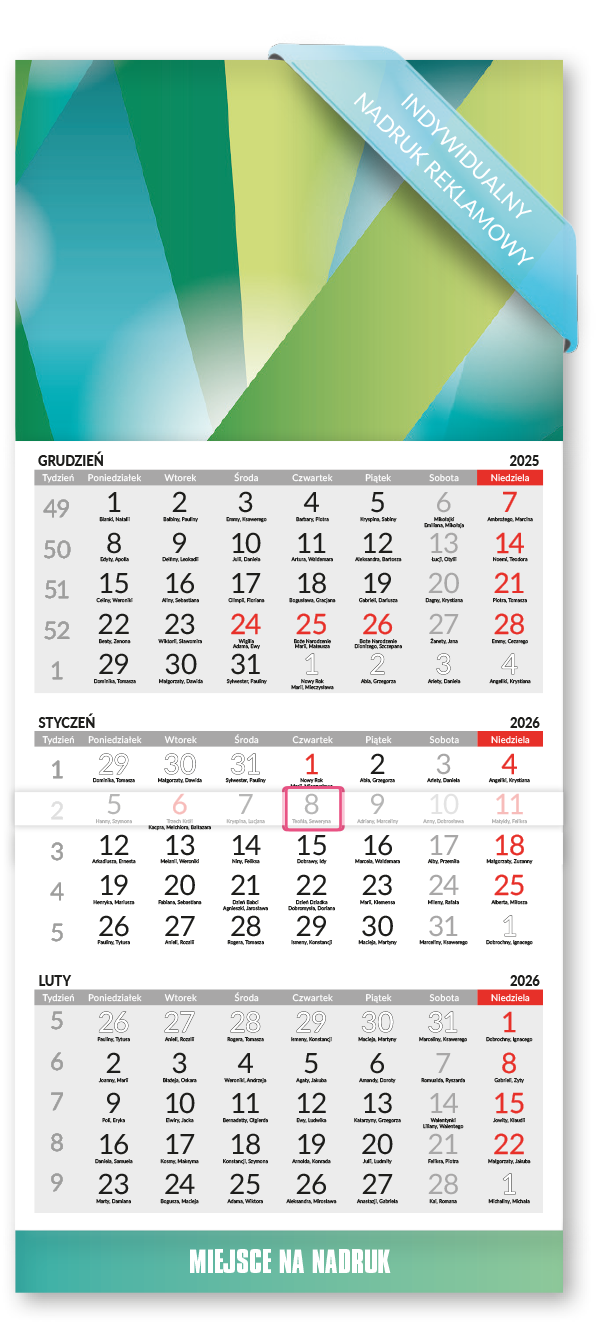 z dodatkową powierzchnią reklamową pod kalendarium - 36 mm